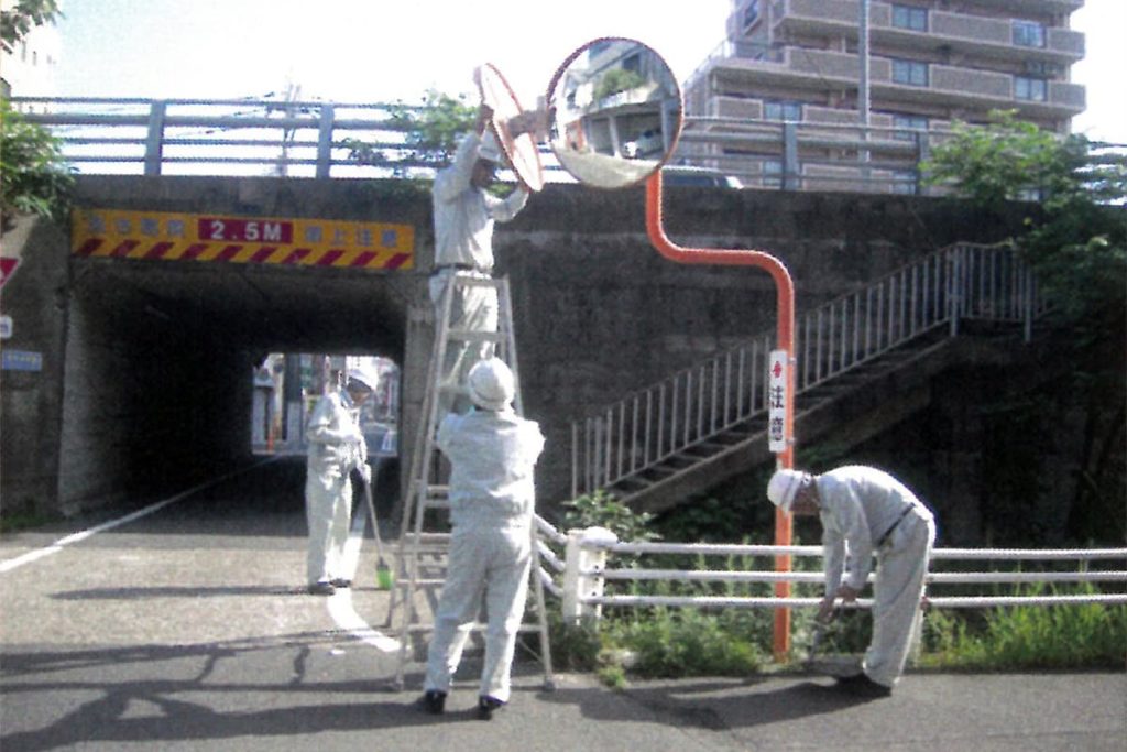 公園の清掃や花壇のごみ拾い、カーブミラーの清掃などを行い、協力会社の方々と共に清掃活動を行います。